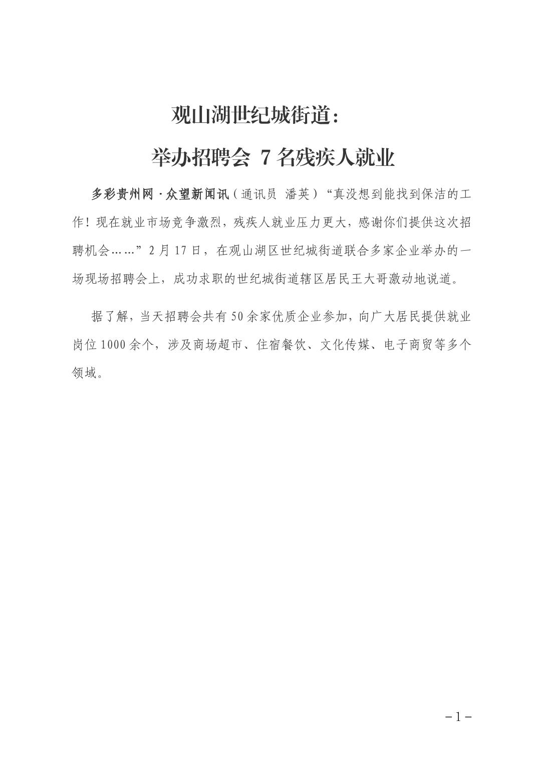 观山湖区世纪城街道:举办残疾人就业招聘会