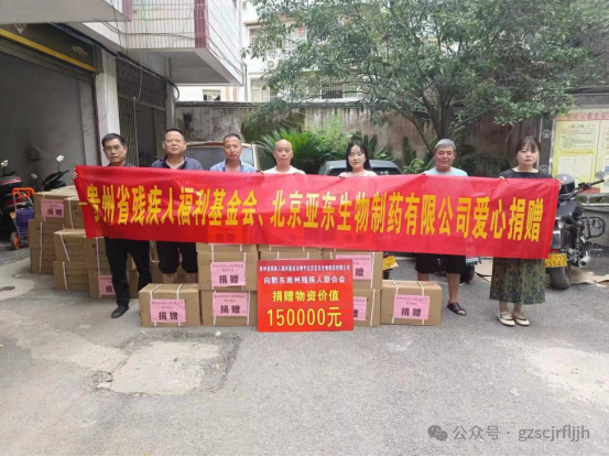 (图为贵州省残疾人福利基金会携手北京亚东生物制药有限公司向黔东南州残联捐赠藿香正气口服液)