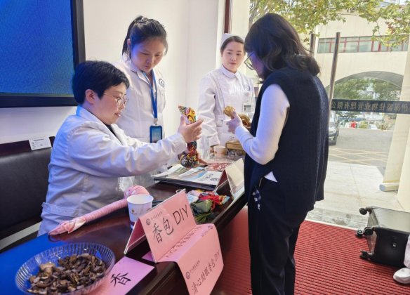 健康咨询随后开展,在物理康复体验区,康复治疗师针对参与者普遍存在的颈肩腰腿痛、肌肉劳损等“办公室职业病”,运用专业物理手法和深层肌肉刺激仪(DMS)、筋膜刀、中频治疗仪等先进康复设备,达到即时缓解肌肉紧张、改善关节功能的效果。在中医药文化DIY体验区,在中医师的指导下,干部职工动手制作内含多种安神醒脑中药材的香包、艾草养生锤。这些由参与者亲手制作、充满心意的小物件,均可免费带回家中,将中医“治未病”的养生理念融入生活点滴。