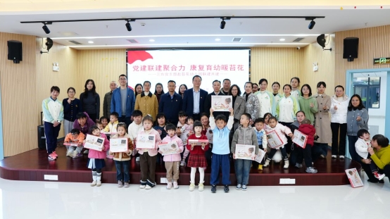 活动中,苔花幼儿园园长冷丽介绍了园区建设历程、特色办学模式及康复教育阶段性成果,并汇报了下一步重点工作规划。孩子们表演了歌曲《苔花》和打击乐《棒棒糖》,展现良好康复成效与积极精神风貌,赢得现场掌声。党员代表共同为孩子们送上爱心礼物,传递组织温暖。