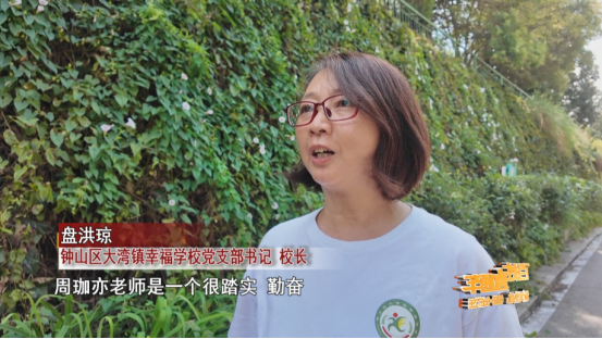 六盘水市钟山区大湾镇幸福学校党支部书记 校长 盘洪琼 周珈亦老师是一个很踏实、勤奋有爱心、有活力的好老师,到我们学校来了以后她积极的参加学校组织的教学培训,青年教师技能大赛,教师辩论赛等活动,在工作当中非常的踏实,经常的备课到深夜,因此她的专业能力提升得非常的快。
