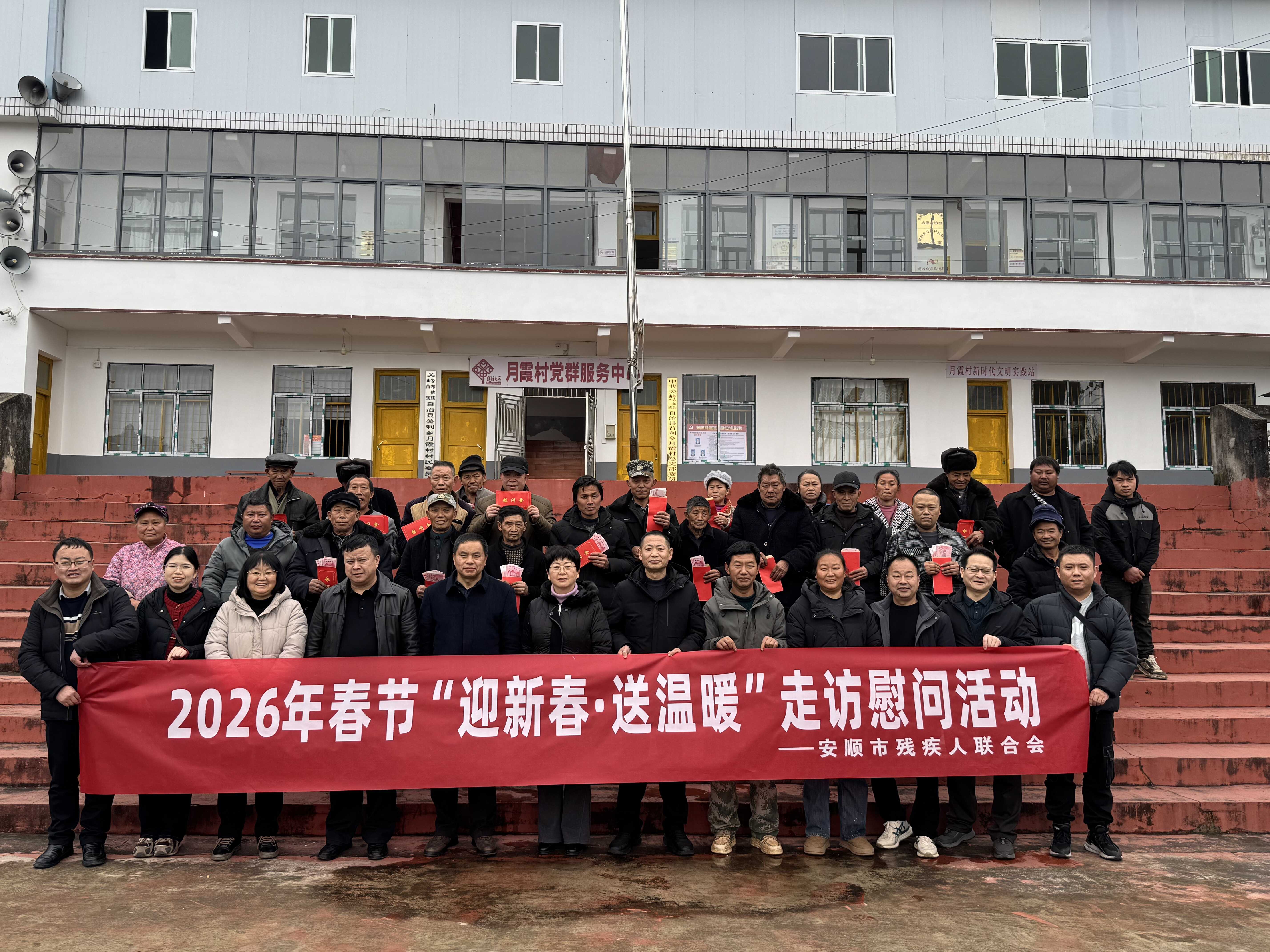 骏马衔春至,慰问暖人心。2月11日,安顺市残联前往帮扶村开展2026年春节“迎新春·送温暖”走访慰问活动,为该村生活困难残疾群众、村组干部等送去新春佳节的美好祝福。