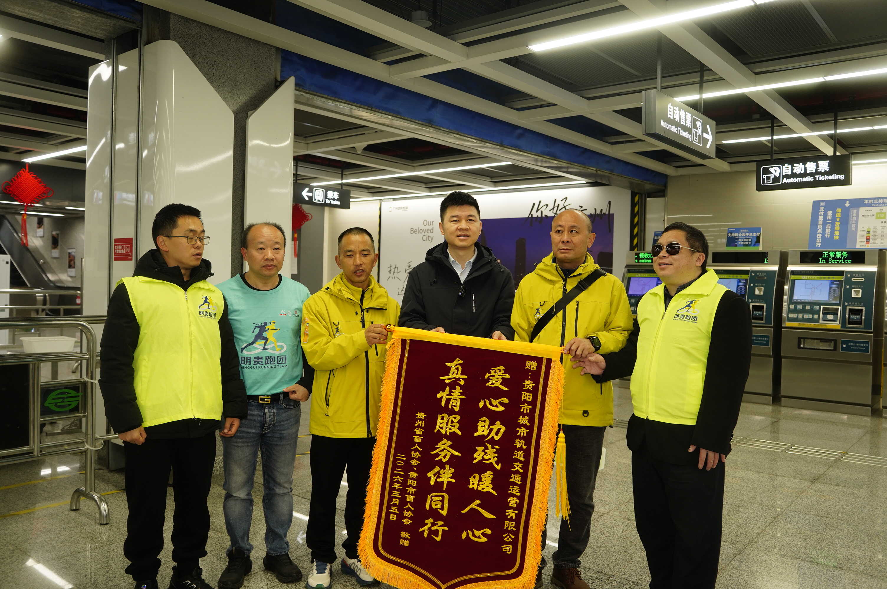 活动当天,省、市盲协代表,还前往地铁1号线观山湖公园站赠送锦旗,感谢贵阳地铁长期以来对残疾人的帮扶。