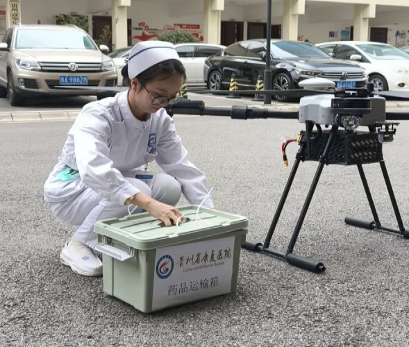 下午两点半,在贵州美遇同航低空智能科技有限公司D15R型号无人机加持下,五袋补气方剂与五盒医院自制止痛敷贴安全精准抵达群团大楼。这一智慧物流应用的尝试,为后续医疗物资的精准配送提供了新的想象空间。
