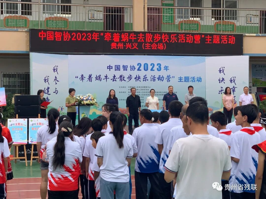为提高残疾人科学健身服务水平,迎接第十四个全国“全民健身日”及第十三届“残疾人健身周”,9月8日上午,中国残疾人体育运动管理中心、中国智力残疾人及亲友协会主办,贵州省智力残疾人及亲友协会、黔西南州智力残疾人及亲友协会、兴义市智力残疾人及亲友协会、黔西南州特殊教育学校、兴义市特殊教育学校承办的2023年“牵着蜗牛去散步快乐活动营”主题活动主会场在贵州省黔西南州兴义市特殊教育学校开幕。